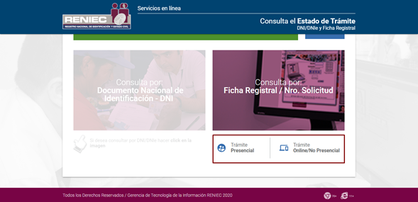 - Selecciona la modalidad de consulta: DNI o Ficha Registral / Nro. de Solicitud.