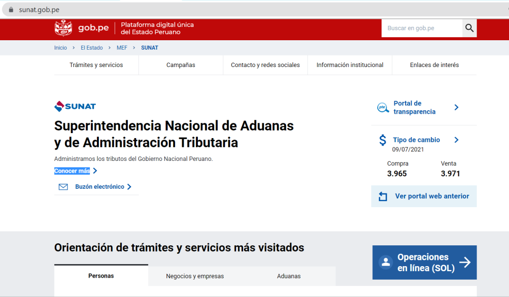 Plataforma 'Sunat: operaciones en línea' para los contribuyentes